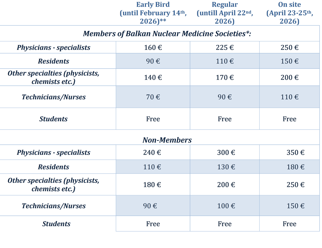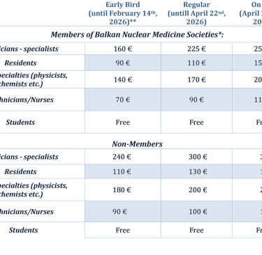 For Bulgarian Nuclear Medicine Society only members, who have paid their membership fee for 2025 will benefit from "Members" registration fee.